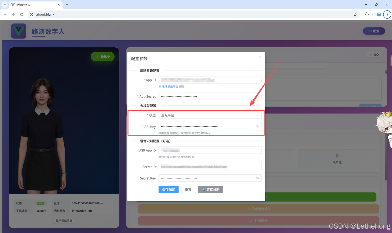 输入语音识别连接参数ASR App ID、ASR Secret ID、ASR Secret Key