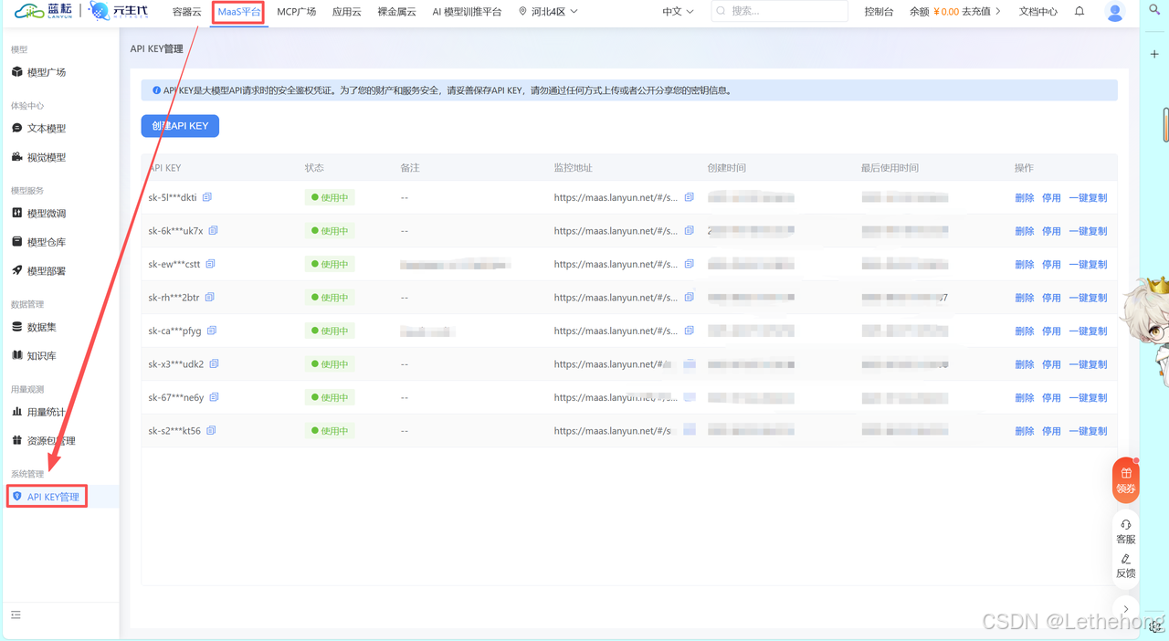 文章中连接的是蓝耘MaaS平台的大模型,可以从蓝耘MaaS平台(https://console.lanyun.net/#/register?promoterCode=18586cc762)获取参数API