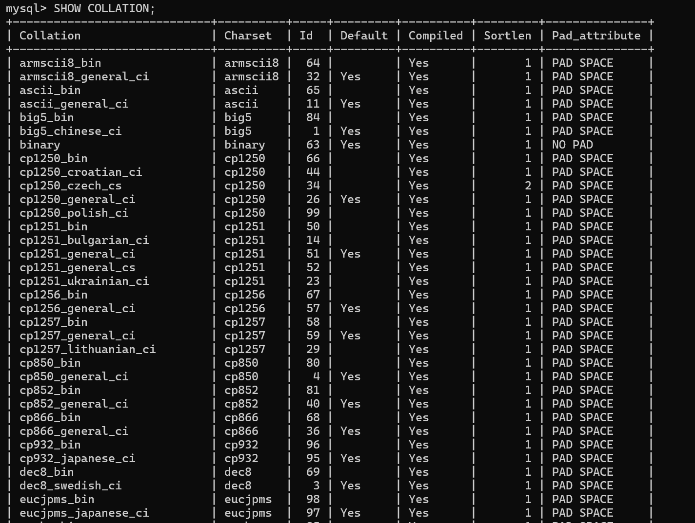 character set utf8mb4 collate utf8mb4_0900_ai_ci;