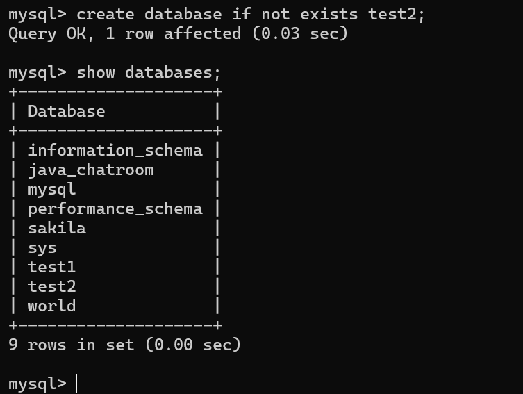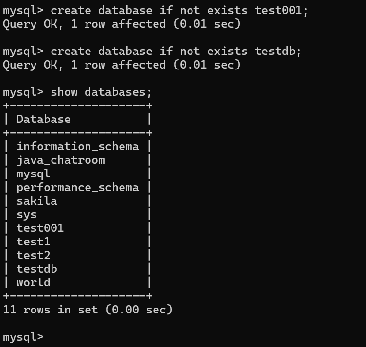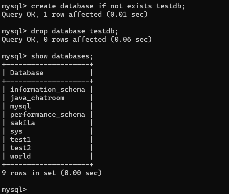 创建一个名为 testdb 的数据库,如果它不存在则创建 (IF NOT EXISTS):