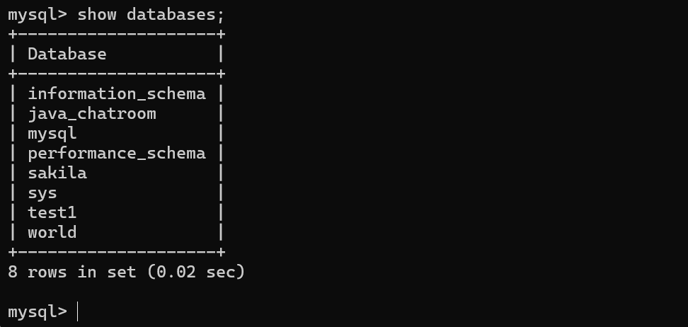 在进行任何数据库操作之前,通常需要先查看当前系统中已存在的数据库列表。