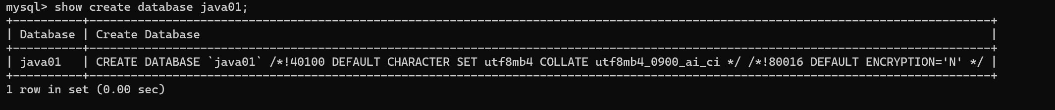 查看我们刚刚创建的 java01 数据库的创建语句: