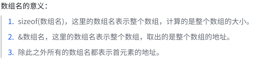 //除此之外,所有遇到的数组名都是数组首元素的地址