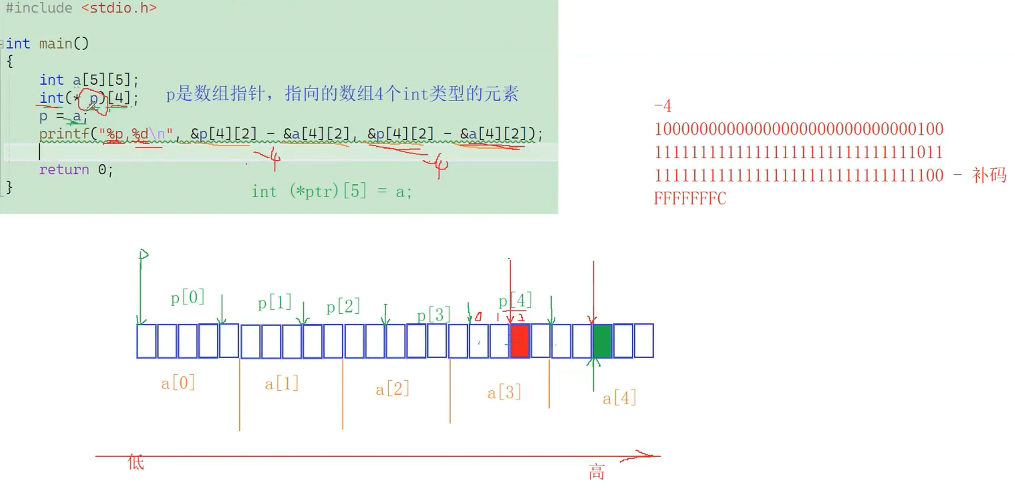 printf("%p,%d\n", &p[4][2] - &a[4][2], &p[4][2] - &a[4][2]);