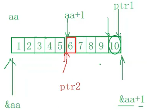 printf("%d,%d", *(ptr1 - 1), *(ptr2 - 1)); // 10 5