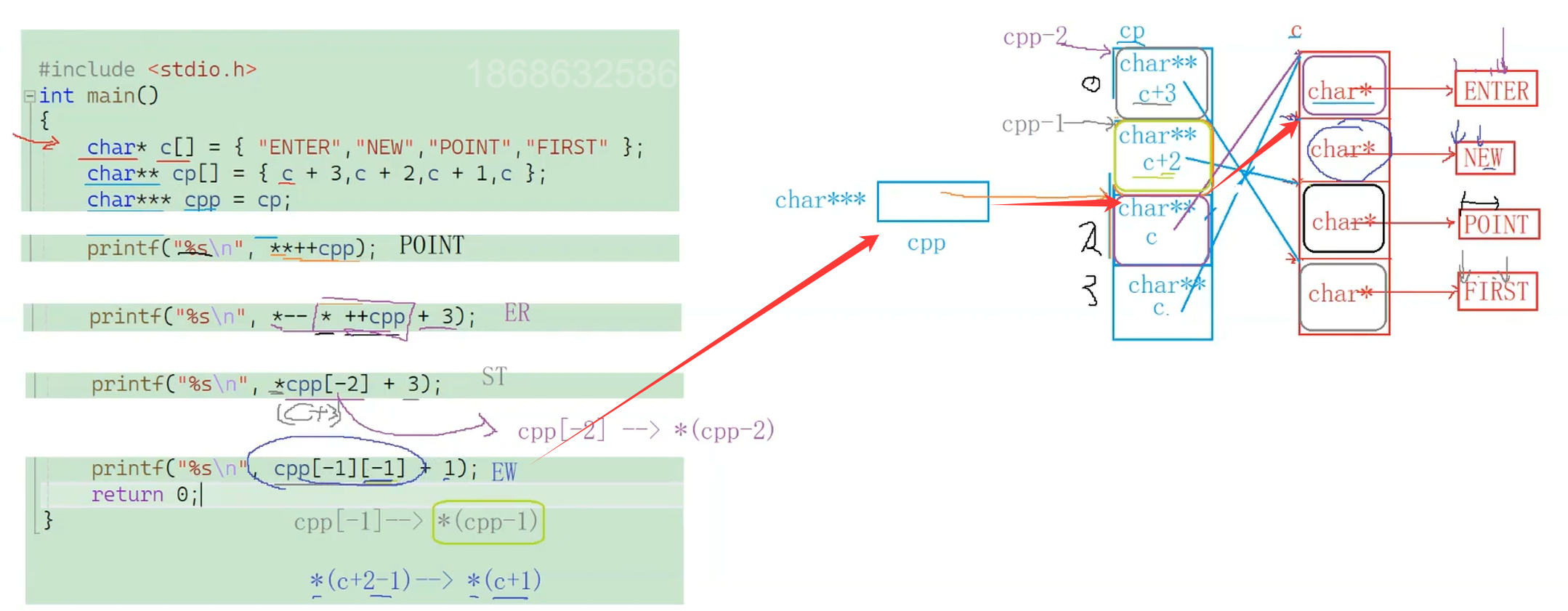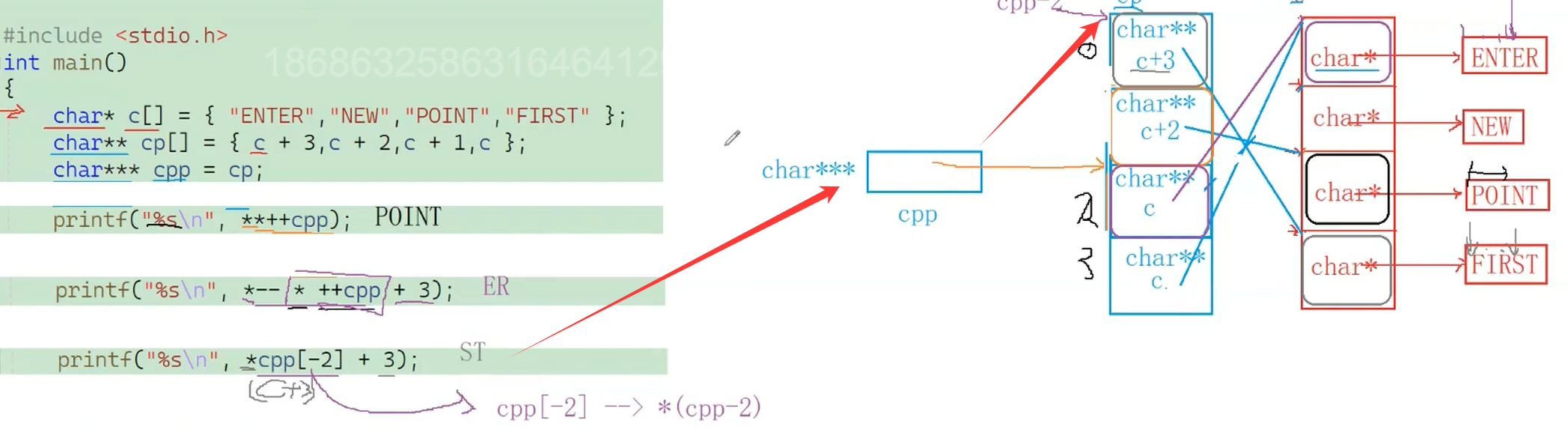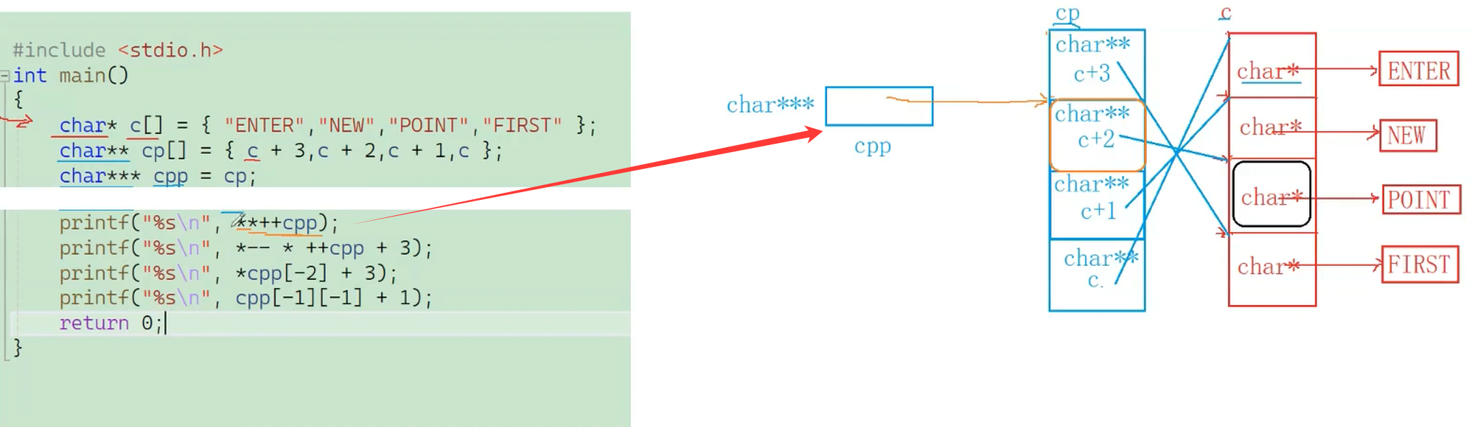 char** cp[] = { c + 3,c + 2,c + 1,c };