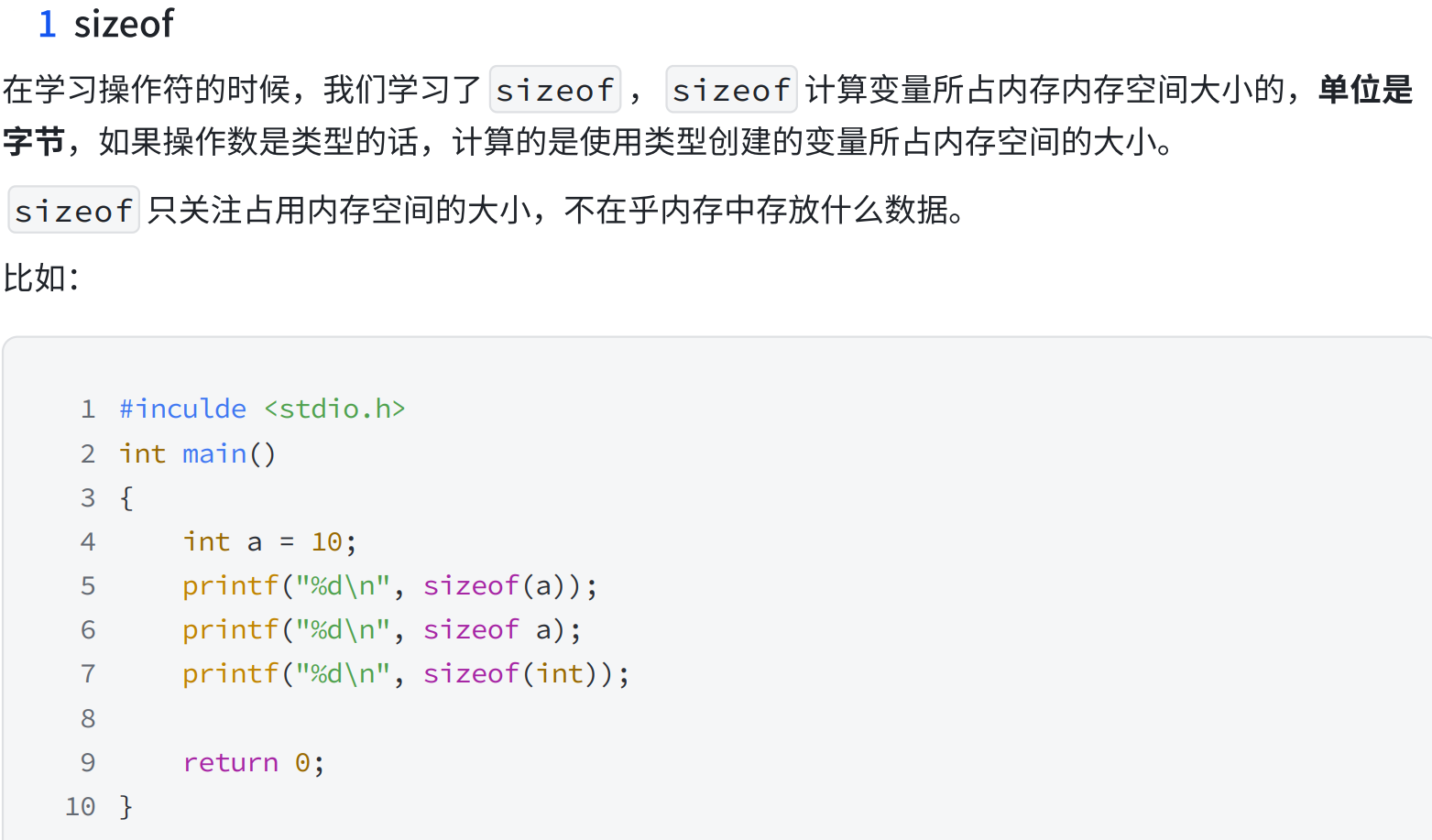 printf("%zd\n", sizeof(a[0]));//a[0]是第一行这个一维数组的数组名,数组名单独放在sizeof内部了
