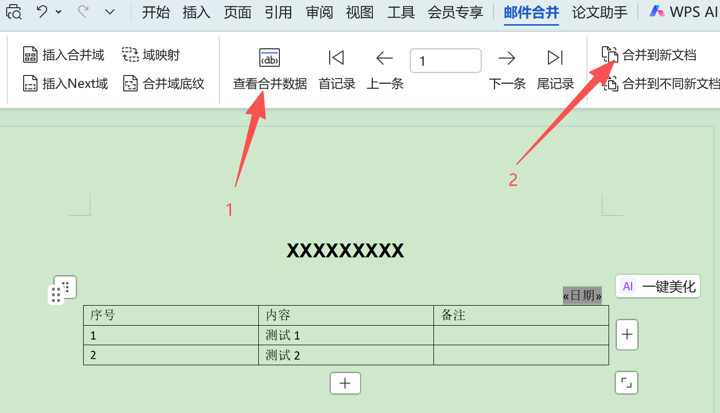 2)模板中会会出现《日期》,点击查看合并数据,会显示对应日期