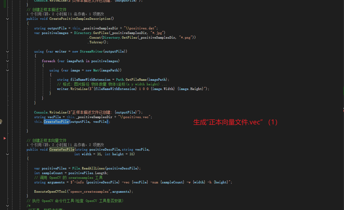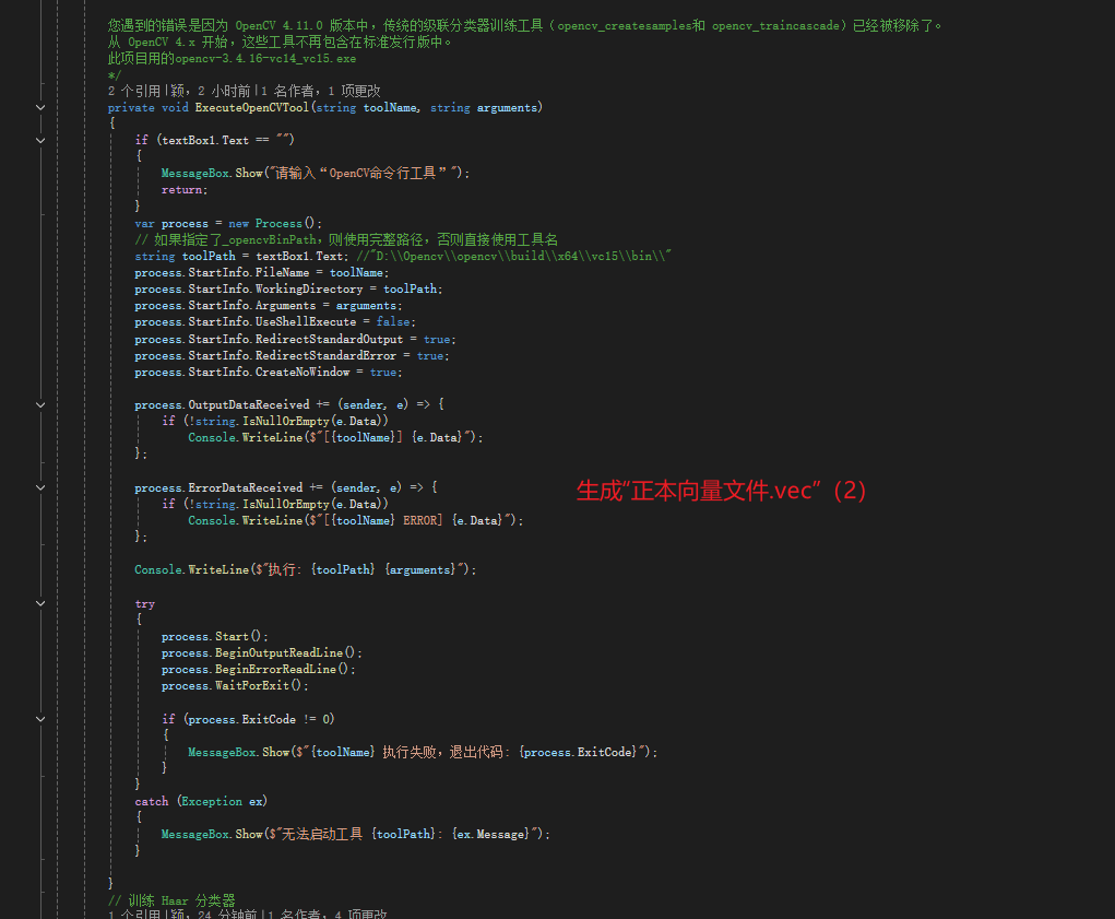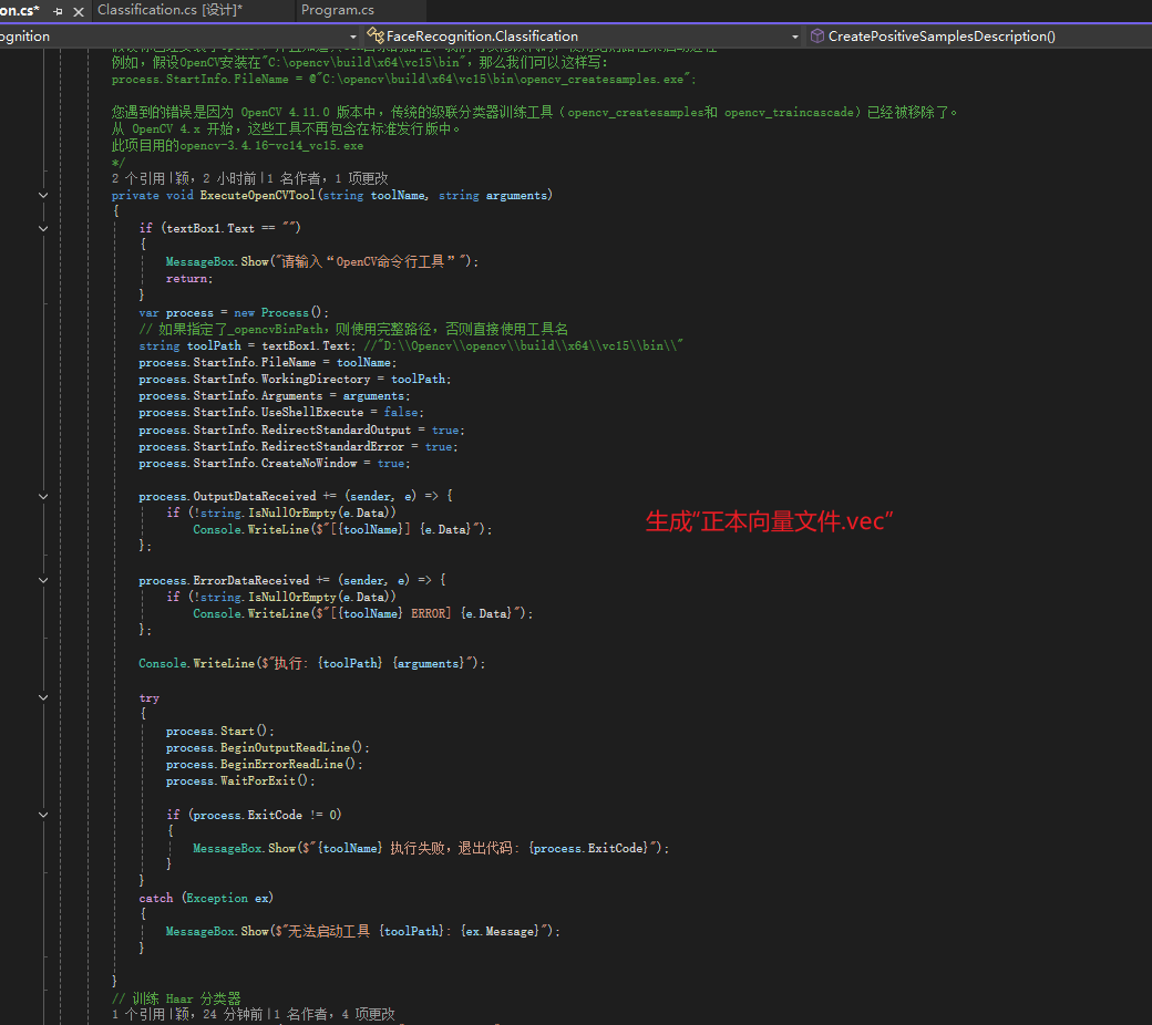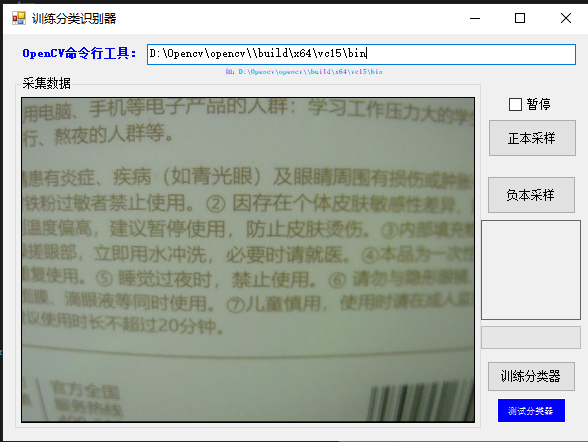 训练分类识别器 winform(视图) OpenCvSharp4(主依赖) opencv-3.4: ①.3.5以下版本 ②.opencv_createsamples和opencv_traincascade:生成向量文件.vec和执行训练
