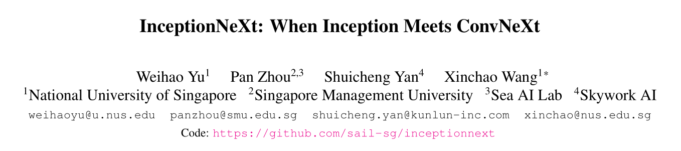 论文题目:InceptionNeXt: When Inception Meets ConvNeXt