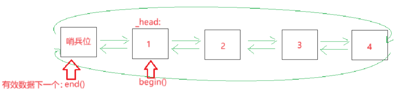 结合库中list的成员变量和构造函数以及节点的构造,我们不难发现list的实现中只有node一个成员变量。构造函数构造出一个头尾相连的节点(所谓的哨兵位)。同时也验证了list底层时应该带头(哨兵位)双向链表.