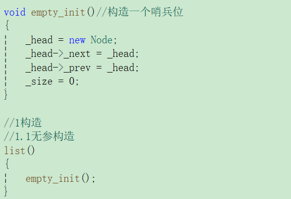思路:由于无参构造就是创建一个只有哨兵位节点的双向链表,后续会用到,所以这里用一个函数(empty_init)来实现。