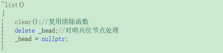 思路:由于上面已经实现clear清除函数,这里我们可以复用清除函数,再对哨兵位节点处理。