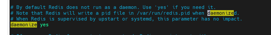 使用vi或者vim命令修改/usr/local/redis-6.2.1/redis.conf中的配置,将后台启动设置daemonize改为yes,如下: