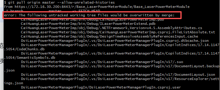 意思是:有未跟踪的工作区文件会被合并操作覆盖。