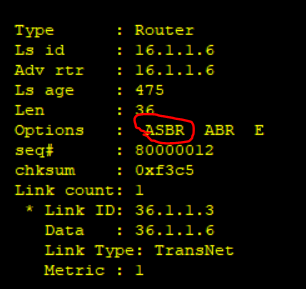 谁产生了这条5类LSA实际上就承担了ASBR的角色,因此在上面的拓扑中实际上R6都承担了ASBR的角色,这一点通过查看它们的一类LSA也可以发现。