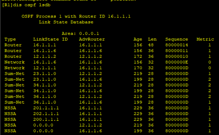 如果想要针对这些5类LSA汇总,需要在nssa区域的ABR上配置命令。