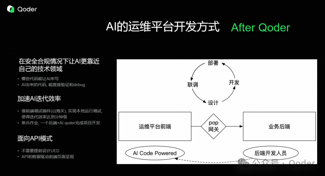 Qoder的实践表明,AI技术正在重新定义后端工程师的工作方式。通过将AI深度融入运维平台的前端开发流程,我们不仅提升了开发效率,更在技术架构、用户体验和系统稳定性之间找到了平衡点。