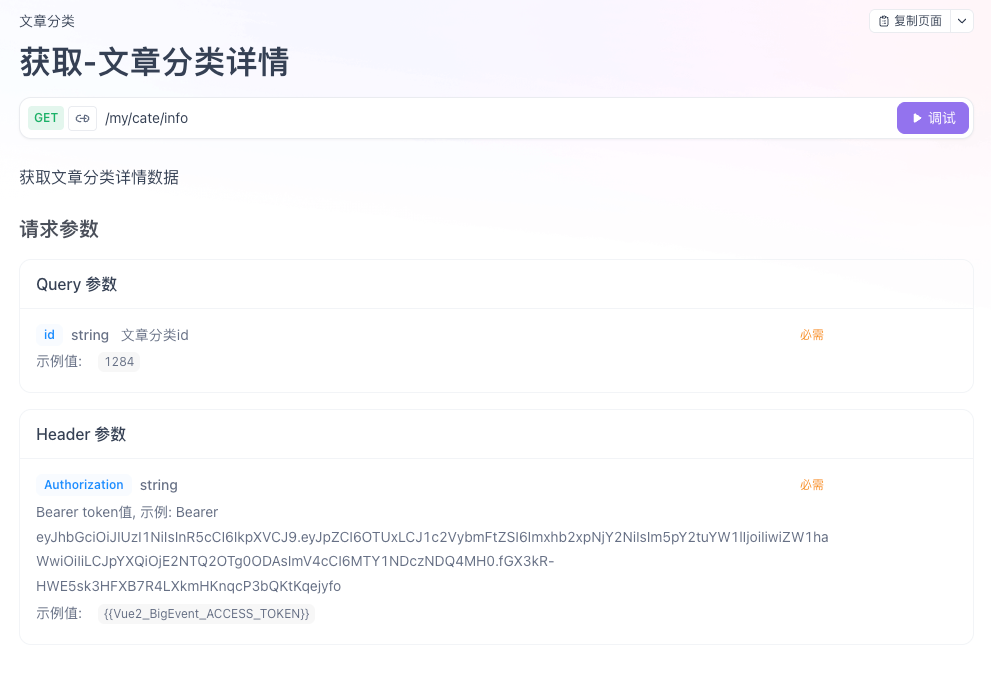 首先,接口都会有一个 baseUrl,作为获取数据的地址,使用不同的接口时,又会有不同的路径,比如这个就是/my/cate/info
