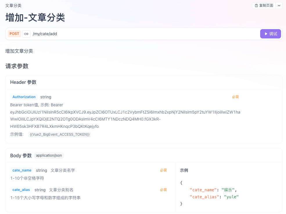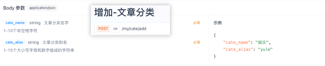 application/json,说明 body 要用 JSON 格式。 - 作用 :用来传递 新增数据的内容。