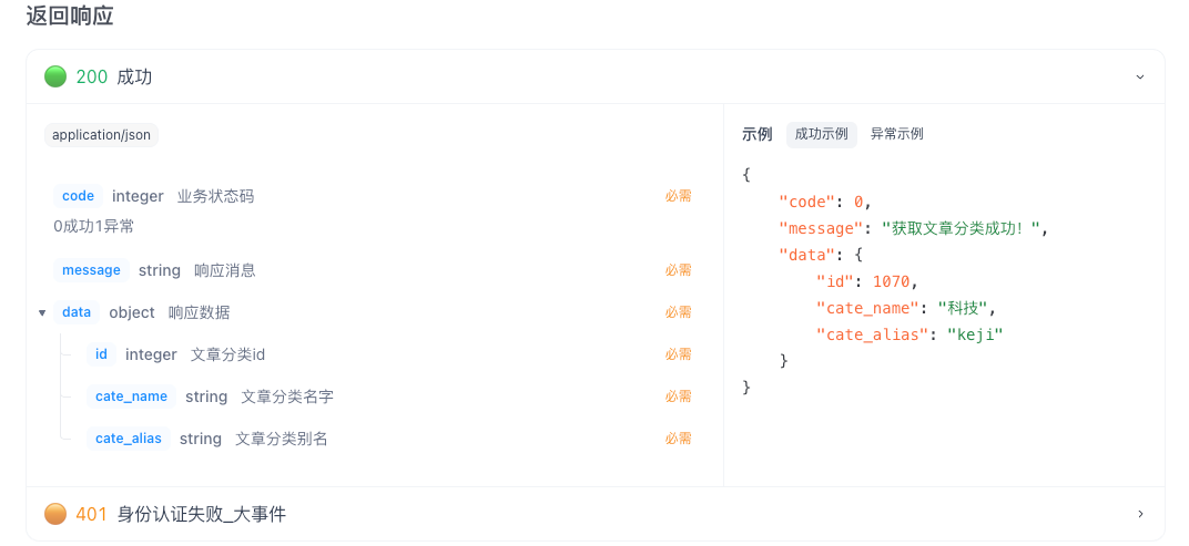 - data :真正的业务数据,这里是文章分类的详情对象。