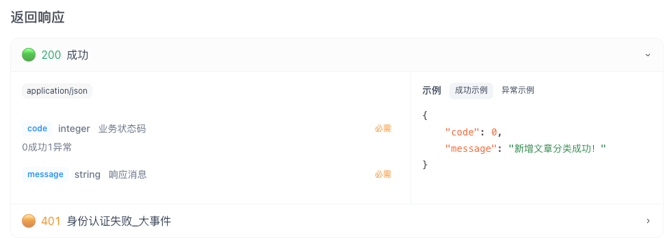 这部分就是告诉你:调用成功以后,后台会返回什么样的数据结构,你前端代码里就可以用这些字段来展示页面。