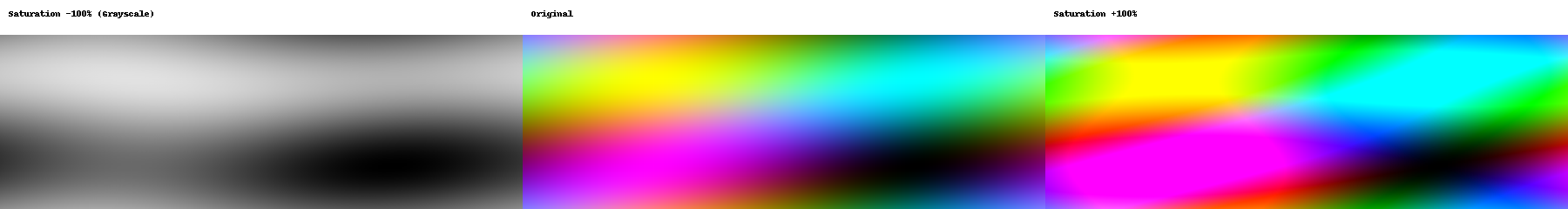 图1-1: 饱和度调整效果对比 (左: -30%, 中: 原图, 右: +50%)