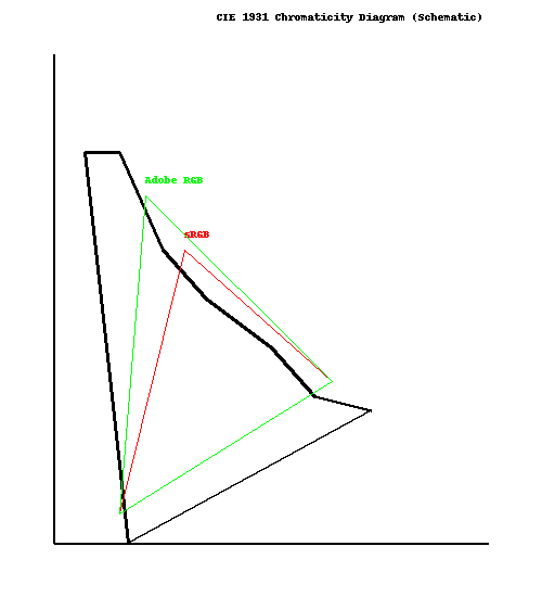 图2-1: CIE 1931 色度图与sRGB/AdobeRGB色域范围