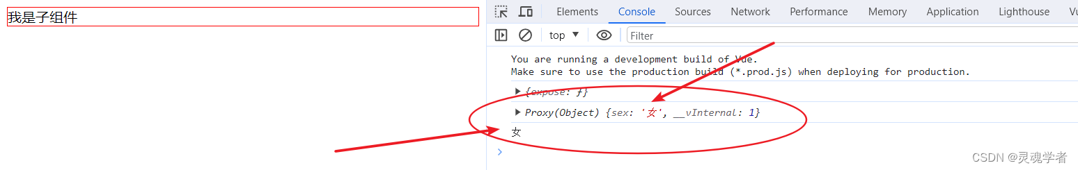 在子组件上设置 sex="女" ,通过context中的attrs来拿到: