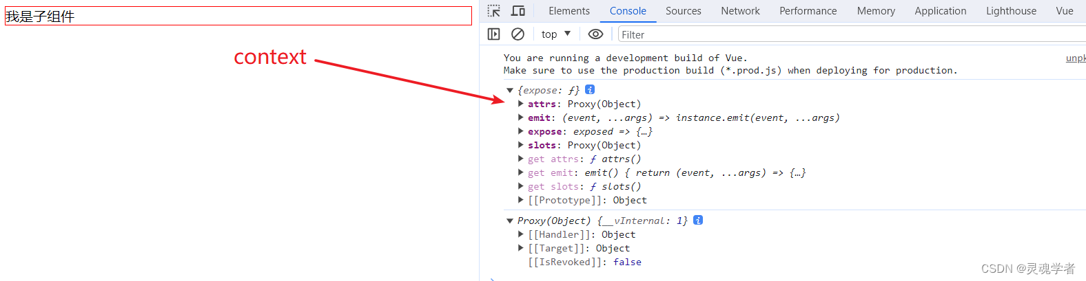 context 可以拿到 attrs 、solts、emit,attrs拿到的就是这个no-props,父传子可以在props中拿到,下面来简单看一下: