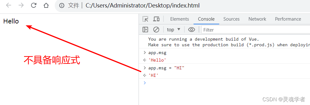 如果是选项式API的方式,那么可以在控制台上使用 app.msg 是可以拿到 msg ,以及使用app.msg = "xxxx" 的命令可以来去修改页面数据的,而现在使用组合式API就不起作用了。