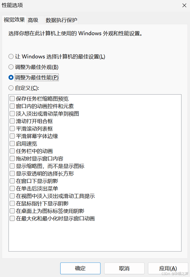 选择【调整为最佳性能】,手动勾选【平滑屏幕字体边缘】(保持字体美观);