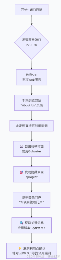 下图清晰地展示了从初始侦察到发现关键漏洞的完整过程: