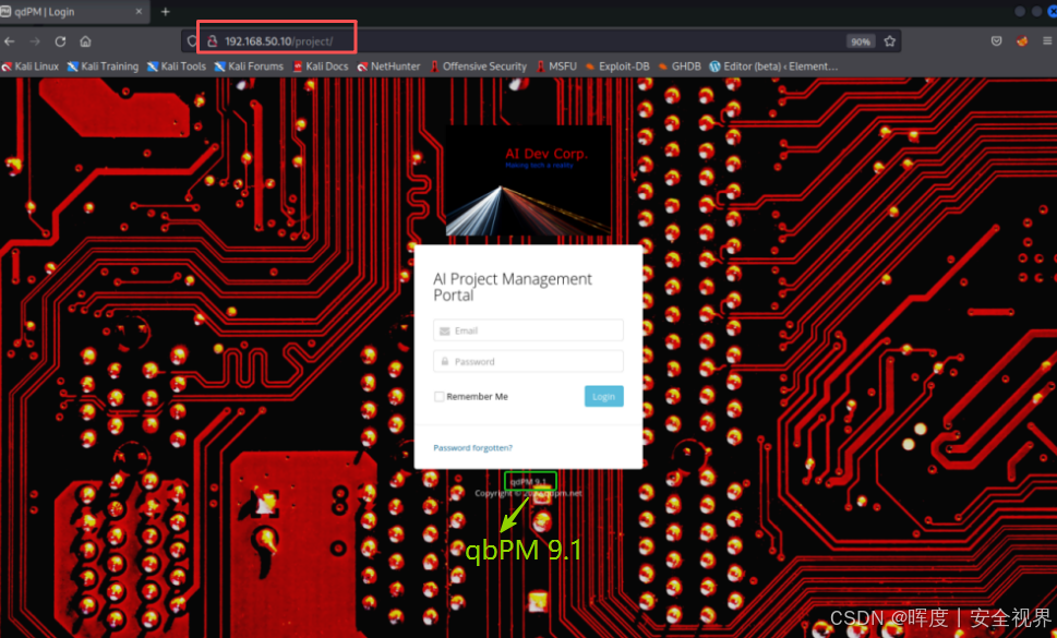 在成功获取应用程序名称 (qdPM) 和精确版本号 (9.1) 这一关键情报后,我们立即转向漏洞利用库,开始为这个特定的目标寻找"武器"。