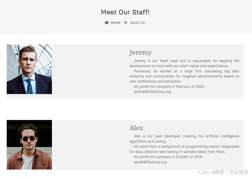 当前障碍 :虽然我们手上有之前在"About Us"页面收集到的员工电子邮件地址 ,但缺乏对应的密码,导致漏洞利用无法直接进行。