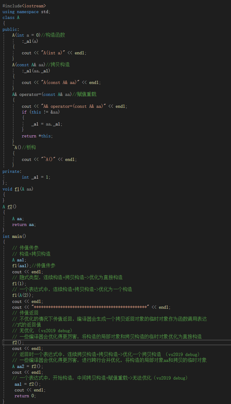 - linux下可以将下⾯代码拷⻉到test.cpp⽂件,编译时⽤ g++ test.cpp -fno-elide-constructors 的⽅式关闭构造相关的优化。