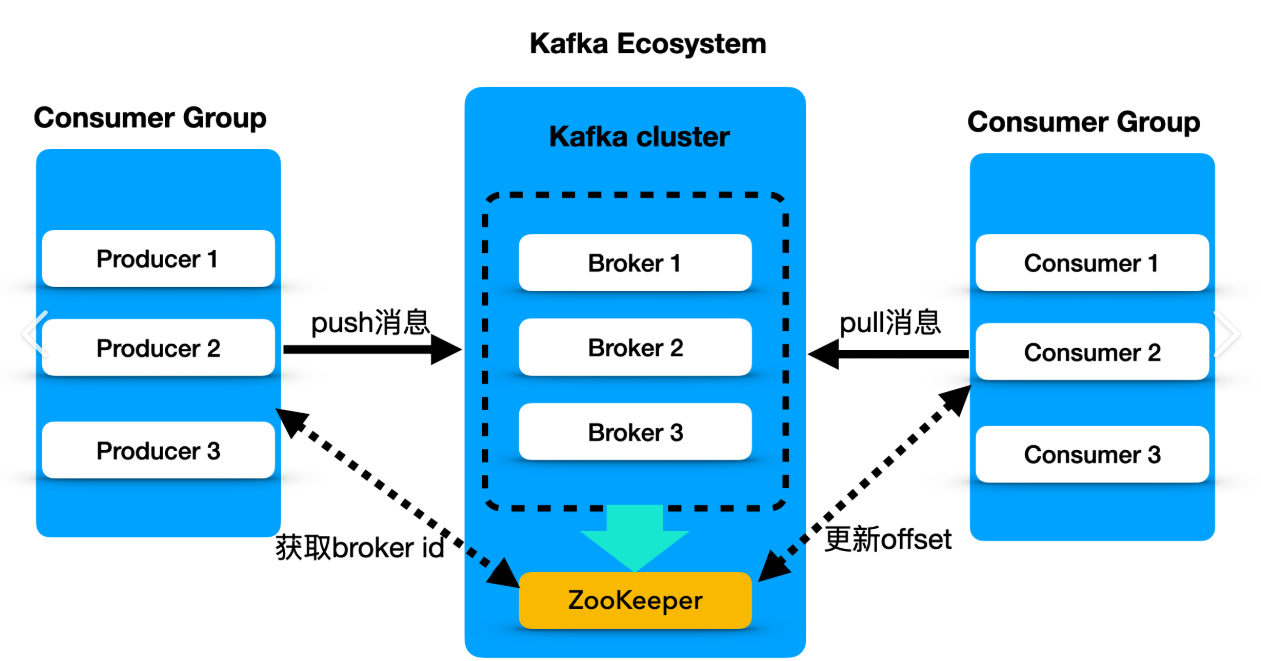 - Broker将消息发送给消费者。消费者处理完这批消息后,会提交当前的Offset。这个Offset提交信息会存储在Kafka的一个特殊内部Topic中,由消费者自己管理。意味着可以回溯到之前的Offset重新消费数据。