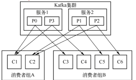 - 多个消费者可以组成一个消费者组,共同消费一个Topic。