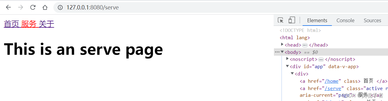 <router-link to="/serve" active-class="active"> 服务 </router-link>