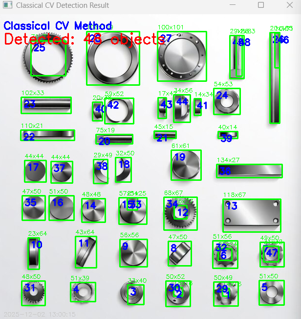 - 连通域分析:通过标记连通区域统计独立物体数量。