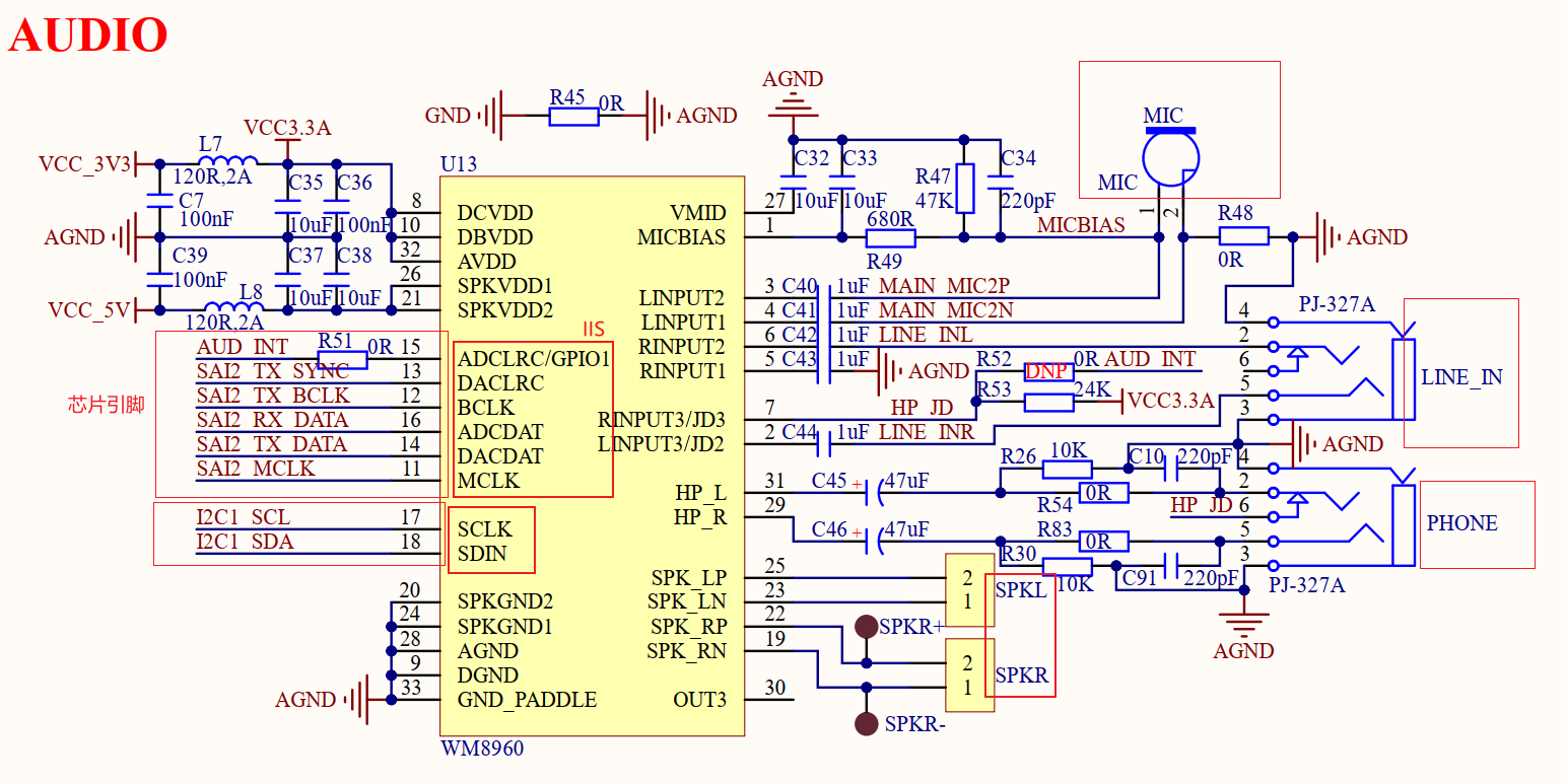 一款音频芯片都具有ADC和DAC的功能,也就是专用的音频编解码芯片