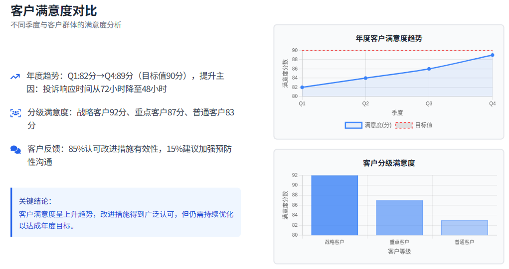智能交互升级:引入对话式AI助手,支持通过自然语言指令修改报告内容,如"将投诉趋势图改为折线图"。