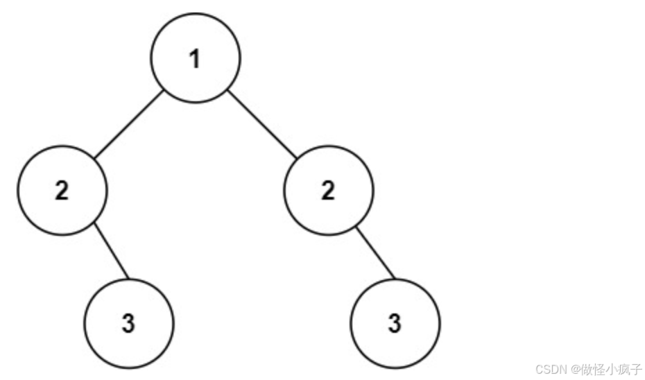 输入:root = [1,2,2,null,3,null,3]