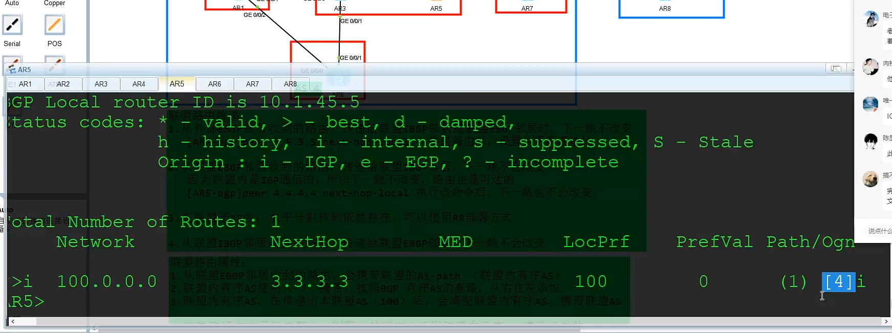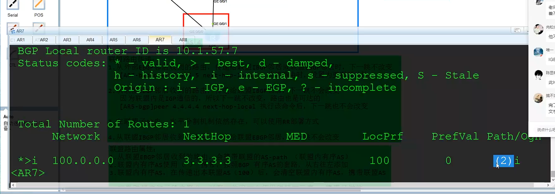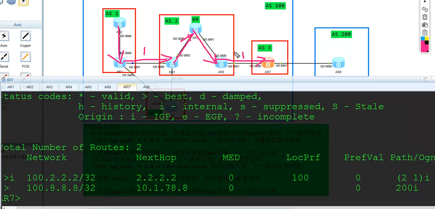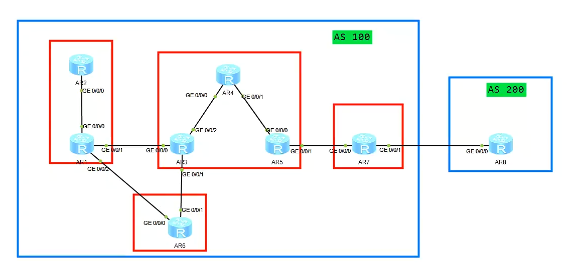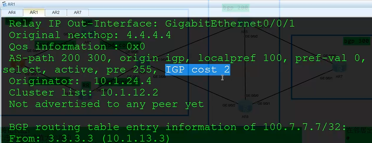 #记得ebgp使用回环建立 使用ebgp multihop改多跳为2