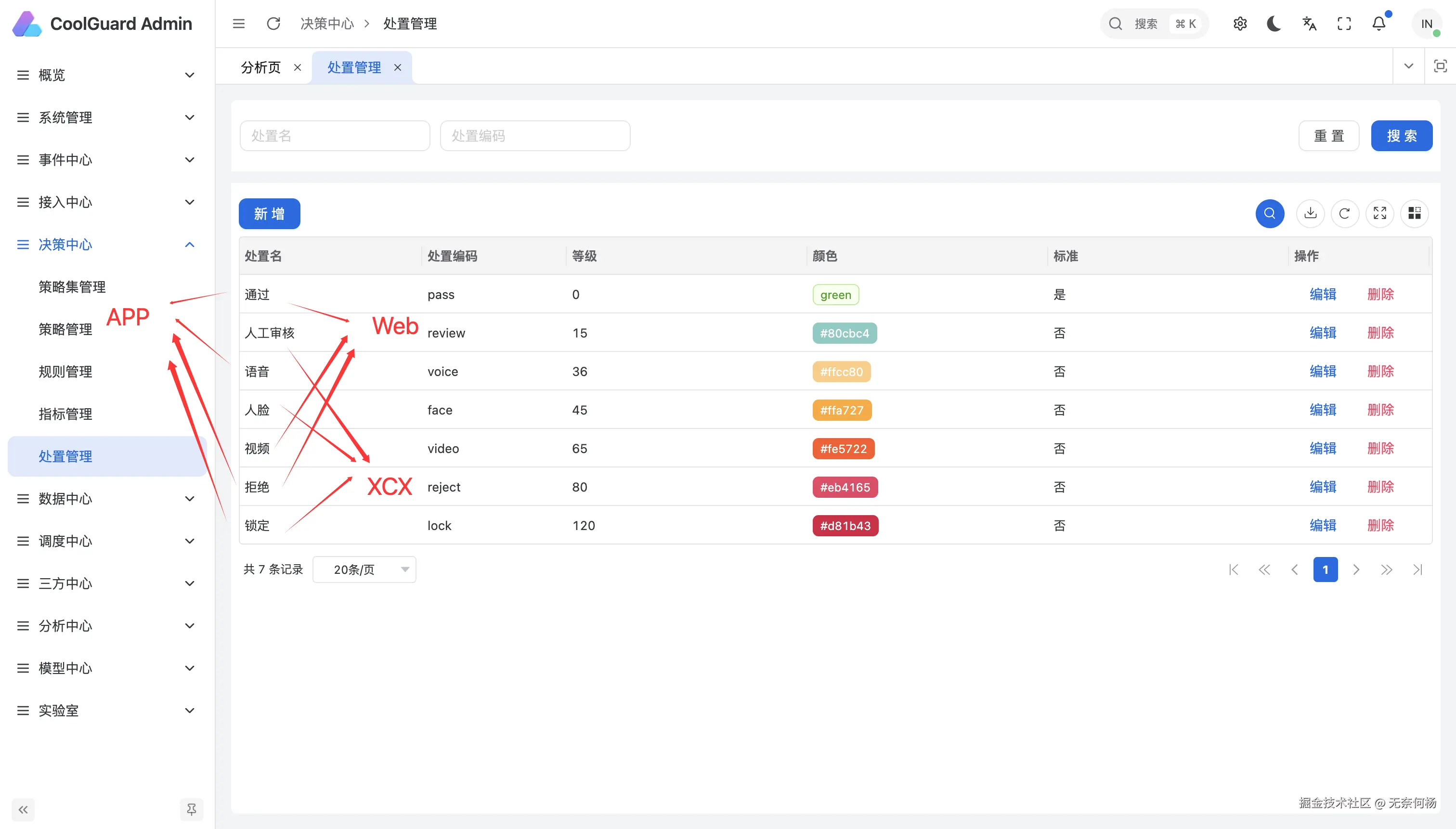 所以在业务确认要接入风控决策时,就可以先构想一下,我的业务可以支持那些决策(如APP支持指纹、人脸;网页端支持APP扫码验证;都支持短信验证等等),不同的业务系统支持度肯定是不同的,对应在风控决策系统中配置一些需要的决策结果。