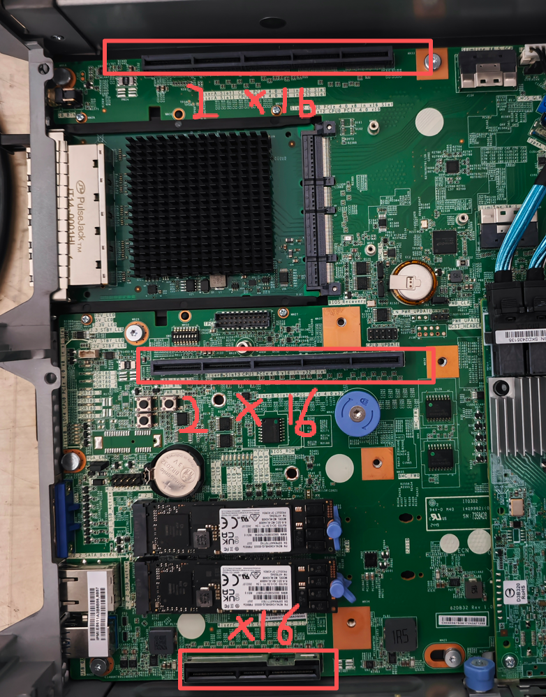 机器标配是2个x162 的Riser卡,和后置4硬盘的组合。
