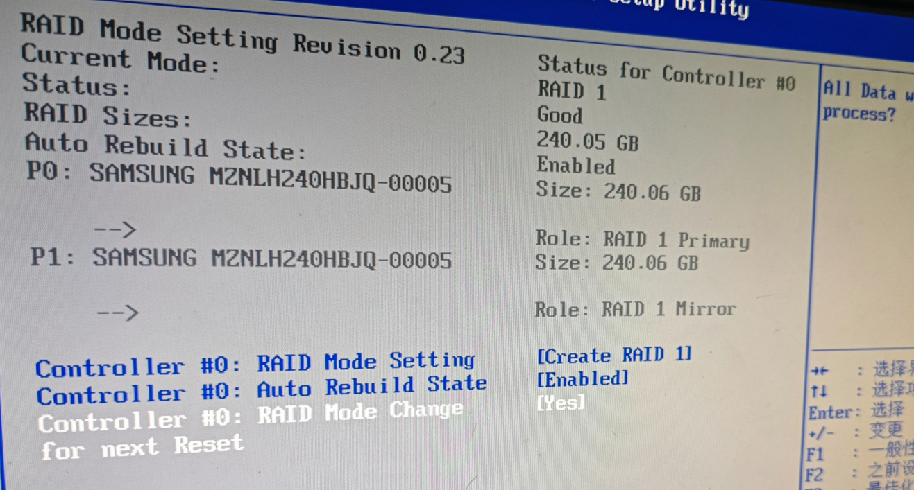 for next Reset 改为YES后 ,下一次重启raid就配置好了