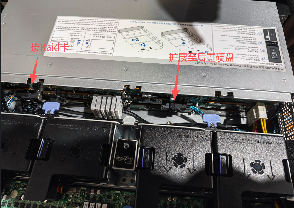 这款机器是做超融合机型的需要支持大容量硬盘,下单前置3.5*12背板,带expander芯片,然后级联扩展至后置硬盘。达到一张raid卡控制16块硬盘的效果。