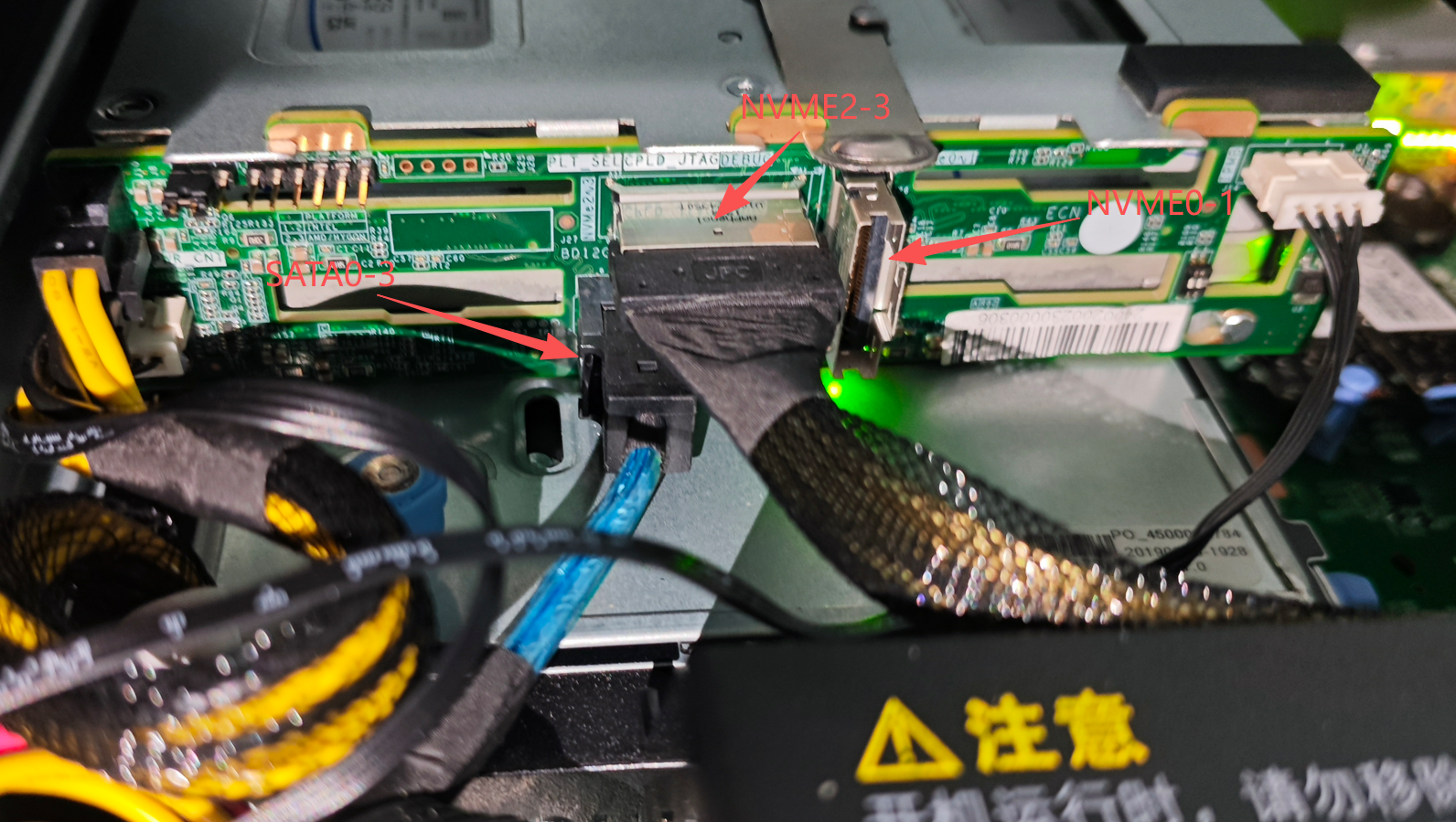 后置4*2.5背板支持SATA硬盘和NVME硬盘,硬盘对应位置如下。
