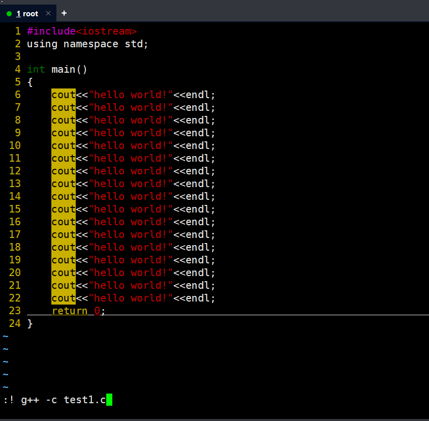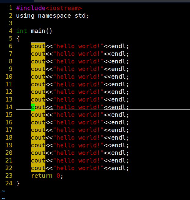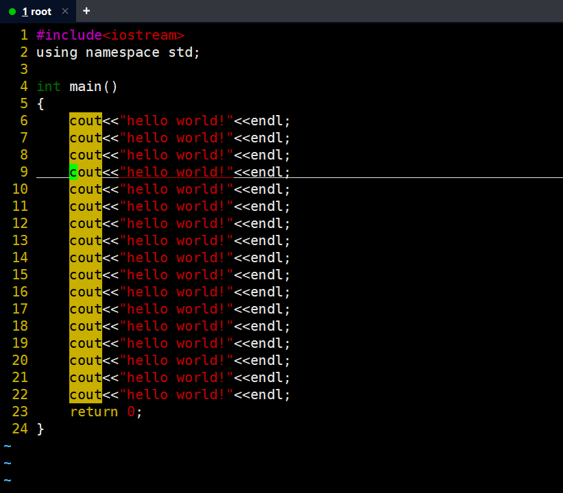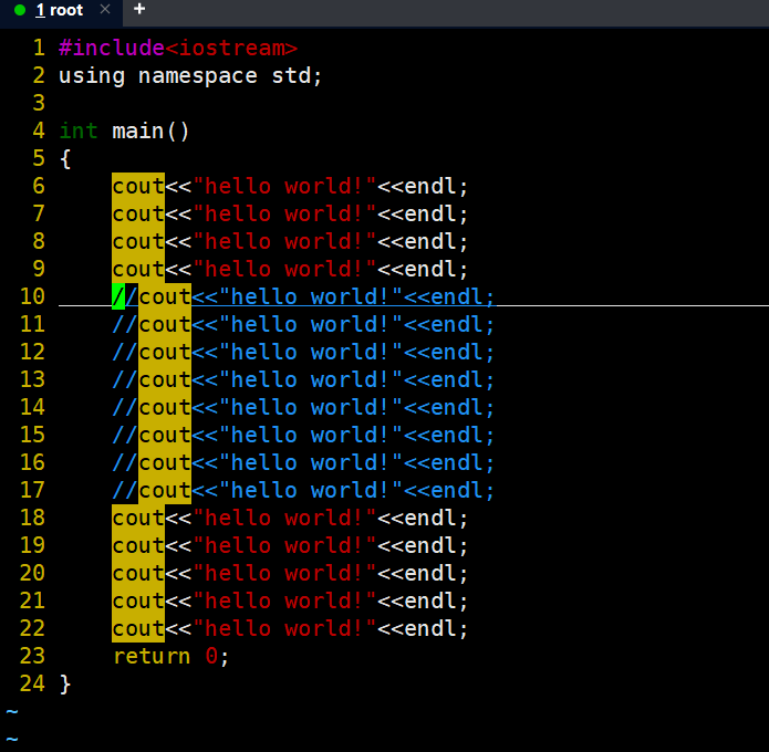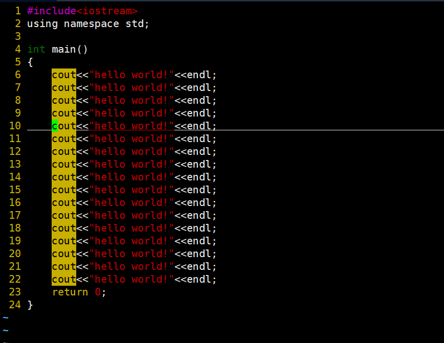 n\] yy 从光标处开始复制n行 \[n\] p 从光标处粘贴n次